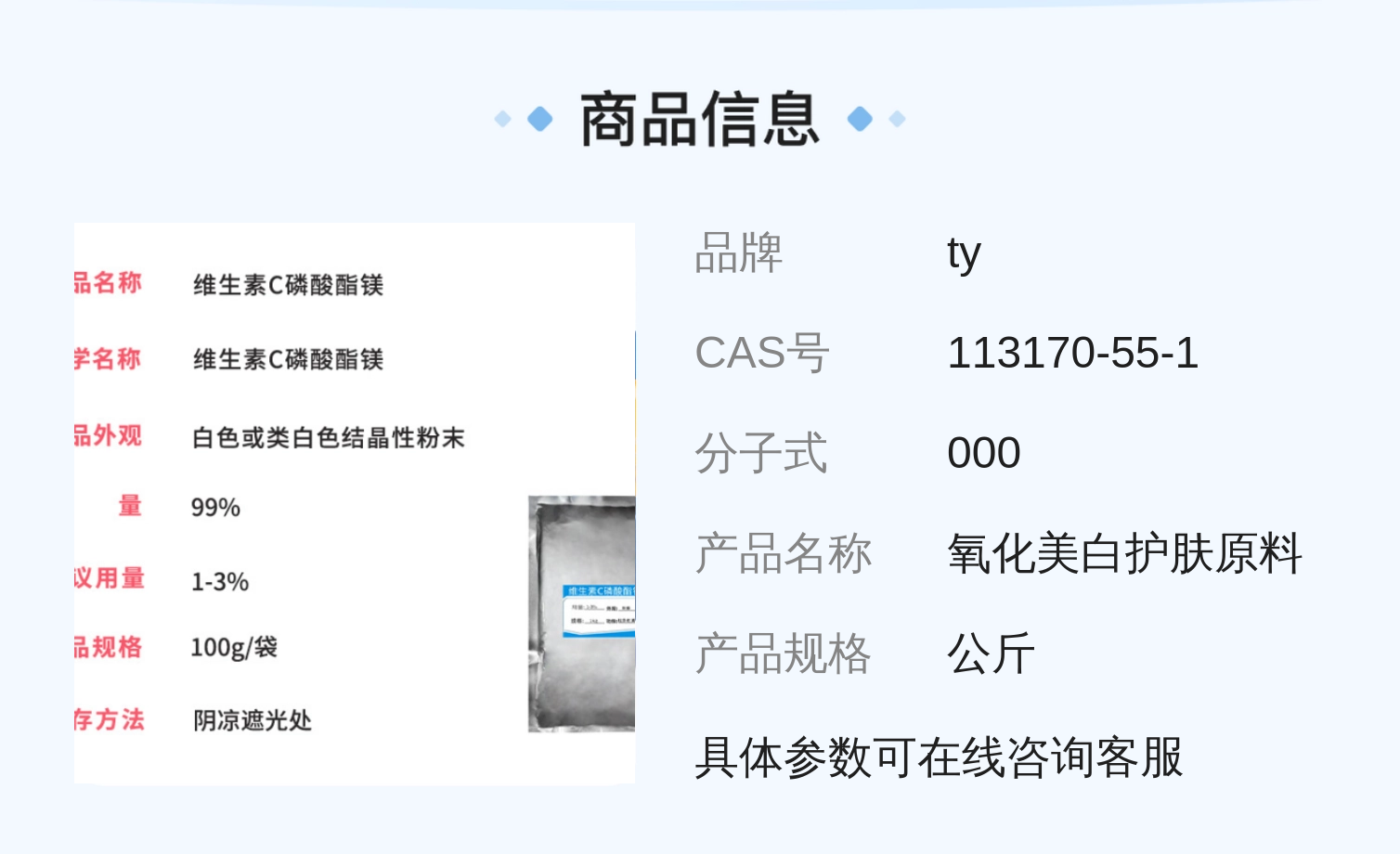 国产 维生素C磷酸酯镁 抗皱去斑抗衰老抗 氧化美白护肤原料 100g