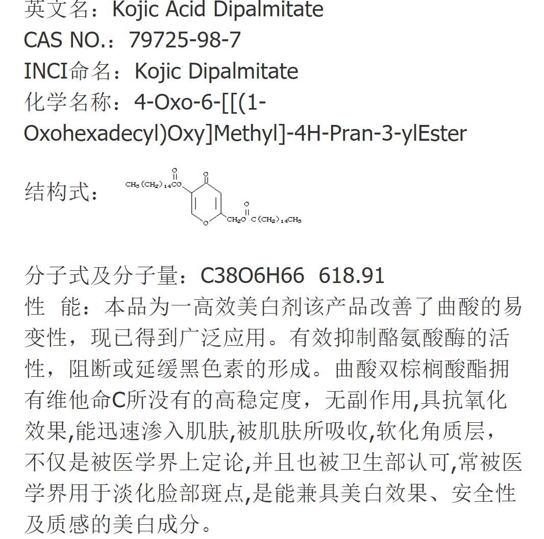 供应 曲酸棕榈酸酯 曲酸双棕榈酸酯 美白祛斑原料 曲酸衍生物